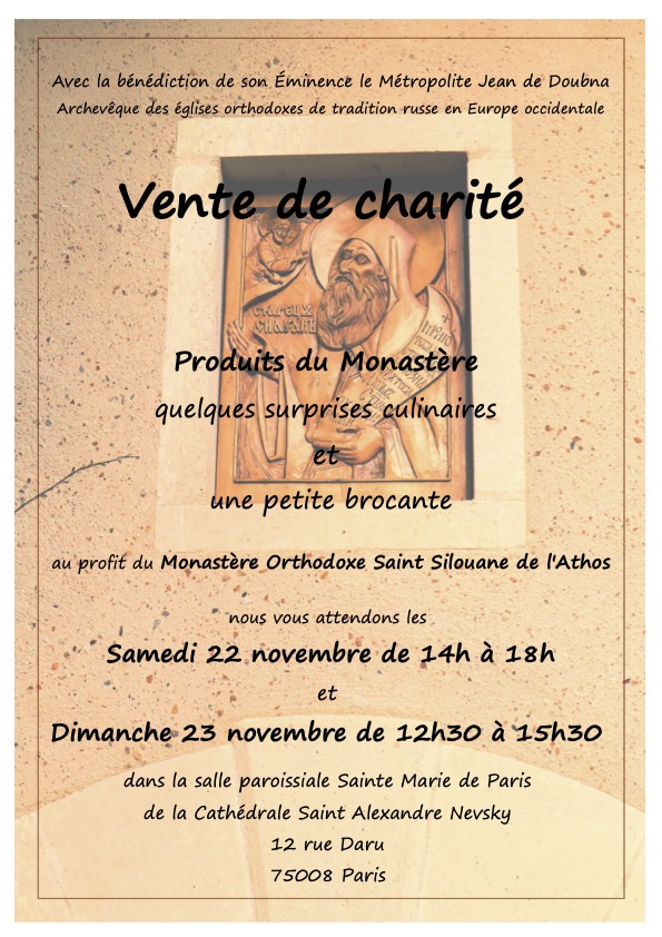 VENTE DE CHARITÉ au profit du Monastère St-Silouane