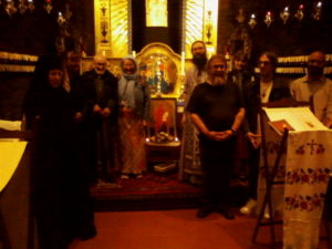 Le Père Mark a célébré le Moleben dans la Sainte Maison, grâce à la générosité de l’Administrateur du Sanctuaire, le Père Ben Eadon, qui a accordé la permission d’utiliser la Sainte Maison pour un service orthodoxe. De nombreux pèlerins ont participé au Moleben, certains restant longtemps après la fin du Moleben pour prier devant la Sainte Icône de la Mère de Dieu de Walsingham. Bien qu’un groupe plus restreint que d’habitude ait assisté cette année (certains souhaitant venir ont été empêchés par la maladie ou des circonstances imprévues), des pèlerins sont venus de Londres, Northampton, King’s Lynn, Mettingham, Norwich et de Walsingham elle-même. Avant et après les tasses de thé, les pèlerins se sont dit au revoir, dans l’espoir que tous se retrouveront l’année prochaine !