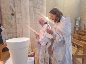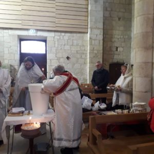 Des paroissiens de Saintes, Rochefort, La Rochelle et des environs avaient fait le déplacement pour l’occasion. La célébration s’est prolongée par des agapes fraternelles, organisées par la matouchka Maroussia et Richard Di Paola.