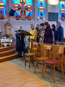 Le chœur, composé de neuf choristes, a soutenu la prière commune avec ferveur, alternant français et slavon, accompagné par la présence d’un grand nombre de fidèles venus pour cette visite attendue avec émotion et reconnaissance.